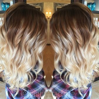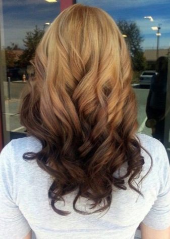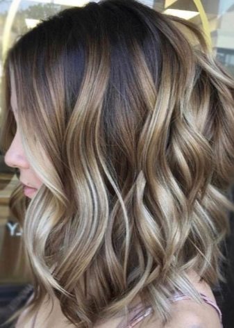 Für Besitzer hellbraune Locken Am besten entscheiden Sie sich für ein blondes Ombre. Das Gleiche gilt am besten für Mädchen mit hervorgehobenen Haaren. Getönte, gestreifte Stränge machen den Übergang noch reibungsloser.