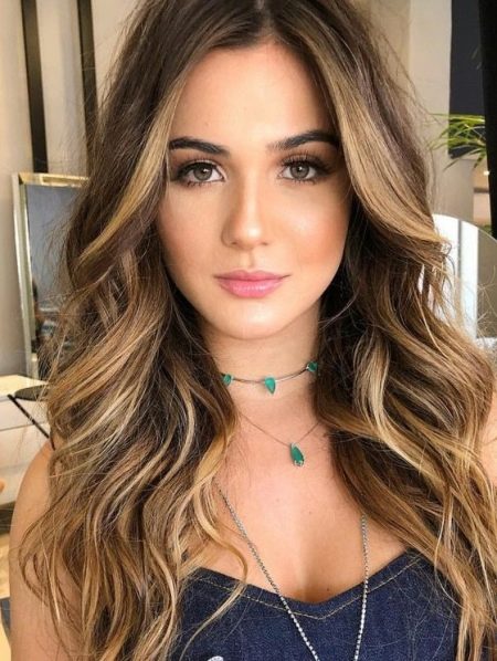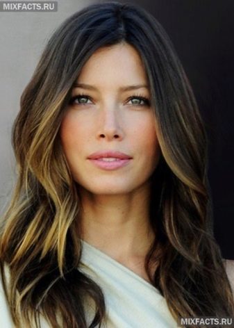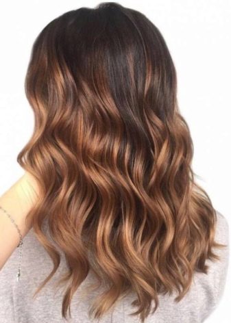 Es ist sofort zu beachten, dass es sich in den meisten Fällen lohnt, den Vorzug zu geben kalt Schatten. Sie sehen etwas schöner als warm aus. Die beliebteste und vielseitigste Option für dunkelbraunes Haar ist ein sanfter Übergang zu Braun oder Karamell.