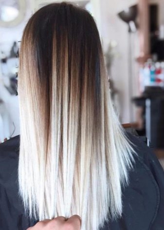 Ombre auf dunklen Locken bleibt ein Klassiker helle Farben von kalten Tönen.