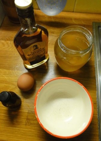 Positives Feedback erhielt eine hausgemachte Maske aus Olivenöl, Eigelb, Honig und Brandy. Alle Zutaten müssen in der Menge von 1 Esslöffel und einem Stück (für Eigelb) gemischt werden.
