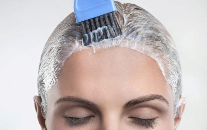 Profis empfehlen, die Mischung aufzutragen Beginnen Sie mit Locken am Hinterkopf und bewegen Sie sich allmählich in Richtung der Strähnen auf der Oberseite des Kopfes und der Schläfen. Es ist auch zu berücksichtigen, dass für jede Zusammensetzung die Belichtungszeit unterschiedlich ist.