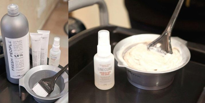 In einer professionellen Friseurumgebung werden verschiedene Mittel zum Bleichen von Haaren als Farbstoffe der ersten Gruppe bezeichnet. Einer der hellsten Vertreter dieser Gruppe ist die auf Wasserstoffperoxid basierende „Farbe“ (30%). Peroxid sollte als Teil der „Farbe“ nur zusammen mit dem Katalysator Ammoniak (3%) verwendet werden.