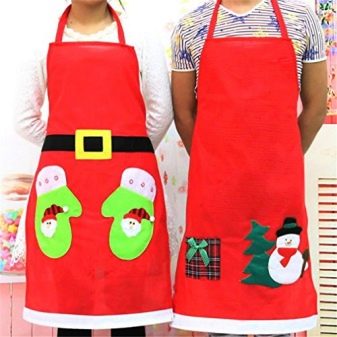 - Typische Küchenschürzen mit Neujahrsdruck - Eine weitere Lösung für alle Altersgruppen. Ein solches Geschenk ist gut, weil es billig ist, aber die richtige Stimmung schafft und im Haushalt nützlich ist. Je nach Geschlecht der Person, der ein solches Geschenk überreicht wird, können der Weihnachtsmann oder seine treue Freundin Snegurochka auf dem Produkt abgebildet sein.