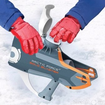 - Schneeblaster - Eine technologische Lösung für diejenigen, die bereit sind, wieder in die Kindheit zu fallen, nur mit einem ernsthaften Ansatz für Erwachsene. Ähnliches Gerät ermöglicht es Ihnen, Schneebälle automatisch perfekt rund zu formen und laufen zu lassen in Analogie zu einer gewöhnlichen Schulschleuder. Im Alltag wird sich so etwas natürlich nicht als nützlich erweisen, aber wenn es mindestens zwei andere Gleichgesinnte mit derselben „Waffe“ gibt, gibt es keinen effektiveren Weg, um die Neujahrsstimmung zu organisieren.