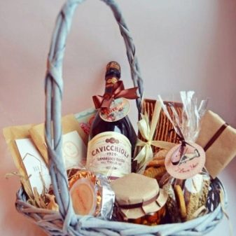 - Geschenkpaket oder Korb - Dies ist ein interessantes symbolisches Geschenk für diejenigen, die die Gewohnheit der Wunder längst verloren haben. Anstatt auf banale Weise Geschenke zu machen, kann ein solches Geschenk wirklich per Post von einer Person erhalten werden, die sich entschlossen hat, Sie zu überraschen. Dort wird es höchstwahrscheinlich nichts wirklich Teueres geben, der Schwerpunkt liegt normalerweise auf verschiedenen Lebensmitteln, aber sie werden nach den besten Traditionen der Vergangenheit hergestellt - ganz natürlich und ohne auffälliges braunes Papier.