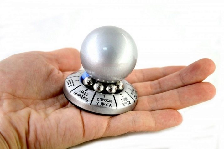 - Ball zur Entscheidungsfindung Jeder hat es im Kino gesehen, aber in Wirklichkeit ist es sehr selten anzutreffen. Natürlich ist es nicht sehr richtig, Ihrem Schicksal in der Wahrscheinlichkeitstheorie zu vertrauen, aber manche Menschen sind so unentschlossen, dass sie ständig von Zweifeln gequält werden, selbst wenn es darum geht, was sie anziehen oder was sie zum Abendessen wählen sollen. Für sie kann ein solches Geschenk sehr praktisch sein.