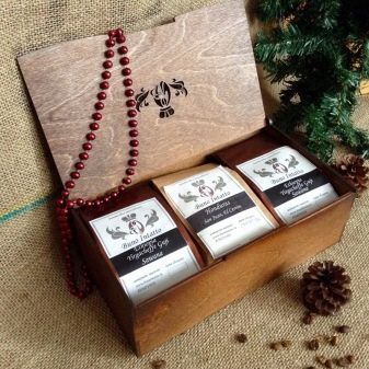 - Kaffee oder Tee In einer ungewöhnlichen Verpackung können Sie ein Glas Marmelade oder Honig hinzufügen.