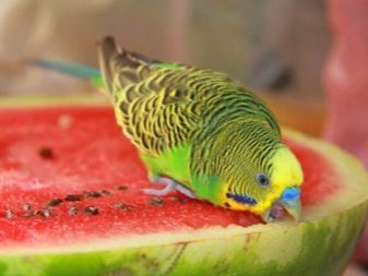 - Wassermelonen - reich an Kalium und Magnesium, reinigen den Körper und sind zweifellos nützlich für das Urogenitalsystem von Vögeln. Ordnungsgemäße Verwendung - in kleine Scheiben schneiden.