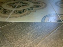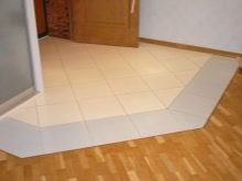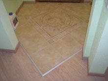 In den Fluren wird häufig eine Kombination aus Keramikfliesen und Laminat verwendet: Die Schwelle und der Bereich in der Nähe der Vordertür sind mit Fliesen ausgelegt, da sie unbeschädigt und leicht zu reinigen sind. Der Rest des Raumes ist mit einem Laminat versehen.