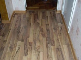 Es wird empfohlen, den Boden in engen Gängen mit Materialien mit Zeichnungen auf der Diagonale zu beschneiden. Es wird angenommen, dass dies den Raum breiter macht. Es wird empfohlen, die Schwellen zwischen den Räumen zu entfernen und den Boden glatt zu beschichten.