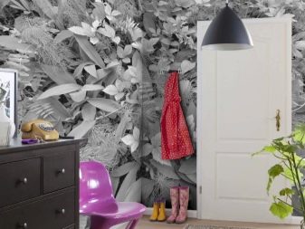 Die Pflege der Wände im Flur erfolgt häufiger als in anderen Räumen. Vinyl- und Vlies-Tapeten sind praktisch: Sie verbergen Mängel gut und sind leicht zu reinigen. Flüssige Tapeten ergeben eine flache Oberfläche und sind wasserdicht.