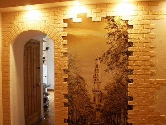 Gemälde, Basreliefs, elegant verkörpert und im allgemeinen Stil bezeichnet, erzeugen den gleichen Effekt. Bilder können mit jeder Technik aufgenommen werden: Wandbild auf Gips, Mosaik, Glasmalerei mit Hintergrundbeleuchtung oder Poster-Poster in einem Baguette-Rahmen.
