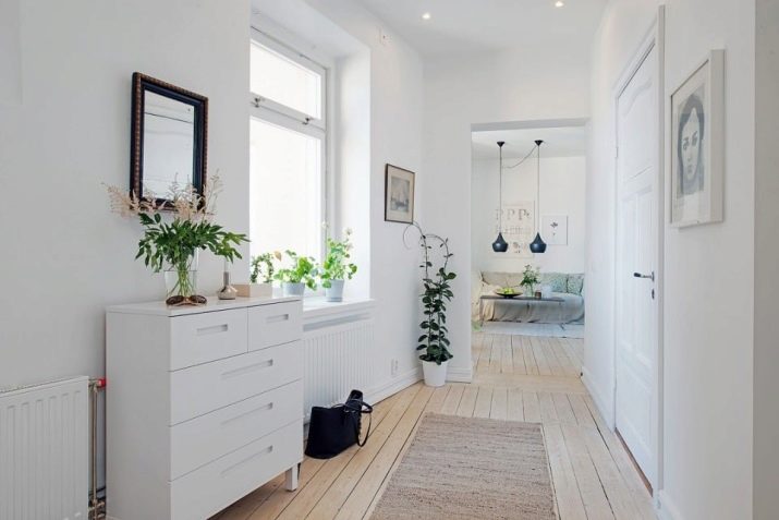 Sie betreten die Eingangshalle von der Straße aus, Kleidung und Schuhe bleiben hier, Straßenschmutz sammelt sich an. Korridor - die Lücke zwischen mehreren Räumen. Mit einfachen Tricks können sie leicht zwischen diesen beiden Zonen unterscheiden. Dies geschieht mit: