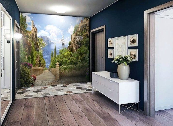 Es ist üblich, die Wände nicht in einem kleinen Flur zu dekorieren, sondern regelmäßig kosmetische Reparaturen durchzuführen. Designerfahrung legt das Gegenteil nahe: Zeichnen, Malen kann nicht nur einen bestimmten Stil betonen, sondern auch den Raum breiter machen.