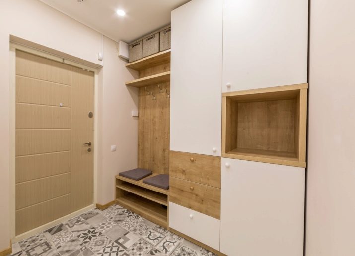 Im Korridor und in der Nähe der Eingangstür wird empfohlen, Möbel aufzuhängen oder in der Fußleiste auf den Boden zu stellen, damit sich kein Schmutz darunter ansammelt. Raumhohe Möbel sind perfekt.