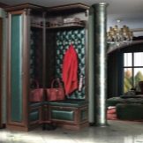 Luxus entsteht im Raum, wenn beim Dekorieren des Kleiderbügels Lederelemente verwendet werden. Zum Beispiel gepolsterter Hocker, Türverkleidung oder ein bestimmter Bereich der kombinierten Ecke. Es sieht besonders schick aus geprägtes Lederähnlich wie Krokodil oder Haut anderer seltener Tiere.