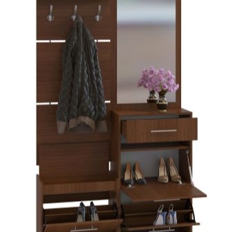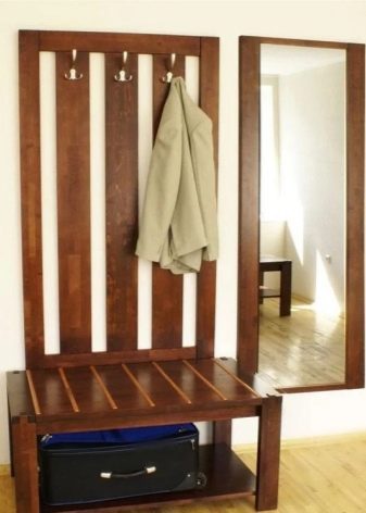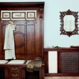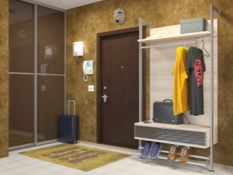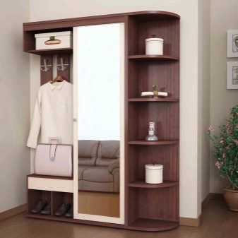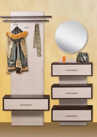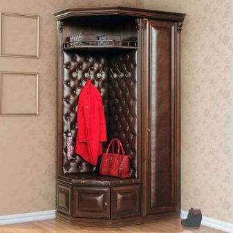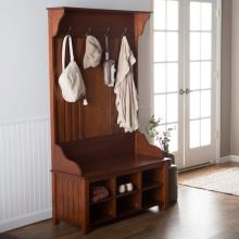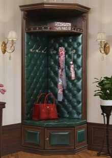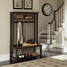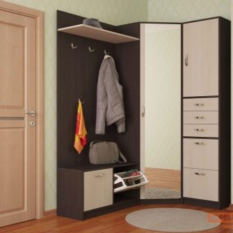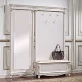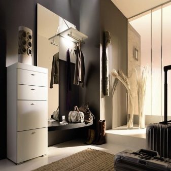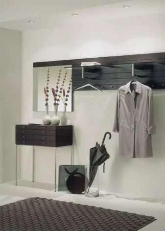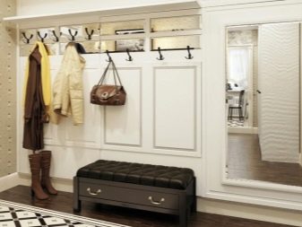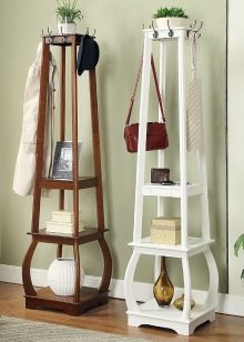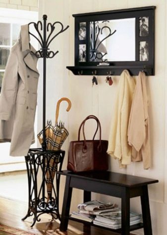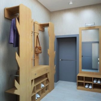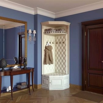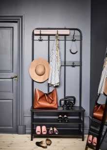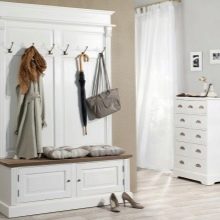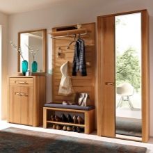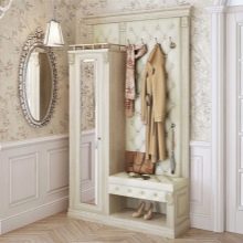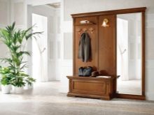 Im gesunden Menschenverstand löst ein Kleiderbügel im Flur Probleme, die für jede Person auftreten, die das Haus oder die Wohnung von der Straße aus betreten hat. Sobald Sie sich ein bequemes Headset ansehen, wissen Sie sofort, wo Sie Ihre Jacke oder Ihren Regenmantel aufhängen müssen, wo Sie Ihre Handtasche ablegen können, während Sie Ihre Schuhe ausziehen. In einer idealen Ecke gibt es einen Platz für kleine Accessoires, Pinsel und Cremes für die Schuhpflege, ein Regal für Hüte.