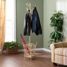 - Wohnort und Klima bestimmen, welche Oberbekleidung wir verwenden. In den nördlichen Regionen werden schwere und voluminöse Jacken, Pelzmäntel und Schaffellmäntel verwendet, daher sollte das Design von Kleiderbügeln stärker sein. In warmen und feuchten Klimazonen lohnt es sich, einen Platz für Sonnenschirme in Betracht zu ziehen.