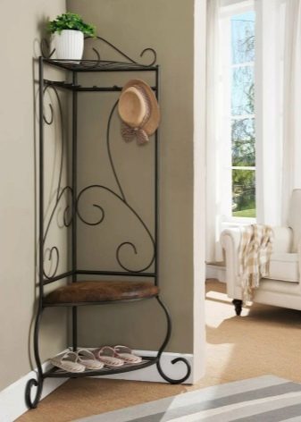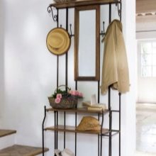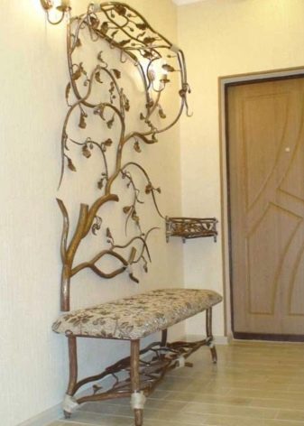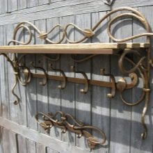 Traditionelle Materialien für Kleiderbügel sind Metall und Holz. Wand- und Bodenstrukturen können sein Eisen Das macht sie besonders langlebig und Bodenstangen sind auch stabil. Der Kleiderbügel kann sogar sein geschmiedetoder vielmehr - aus geschmiedeten Elementen zusammengesetzt.