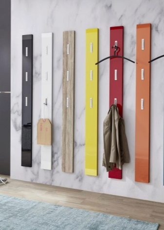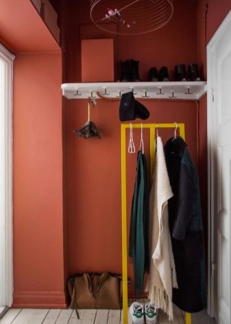 - Laconic Hanger-Bar vertikale Strukturen - Dies ist eine sehr moderne Lösung. Diese moderne Version hilft im kurzen und breiten Korridor, wenn traditionelle Kleiderbügel und Headsets den Raum „auffressen“. Diese Technik hingegen vergrößert den Raum optisch.