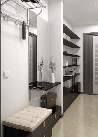 - Denken Sie an einen Platz für Schuhe - Im Korridor gibt es nur ein Paar oder zwei oder drei gleichzeitig für jedes Familienmitglied. Bänke mit Schuhregalen - das ist ein guter Schachzug;