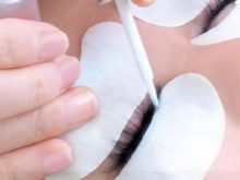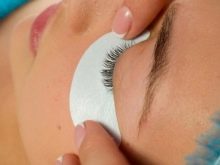 - Zusammen mit der Ziliarkante wird ein spezieller Schutz in Form eines Klebebands auf den unteren Augenlidbereich aufgebracht. Dies ist notwendig, um den Kontakt des Klebers mit diesem Bereich auszuschließen. In der Regel werden hypoallergene Pflaster verwendet, die gut passen, aber keine Hautreizungen verursachen.