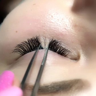 All diese Optionen können nur unter der Bedingung realisiert werden, dass die Wimpern des Kunden gesund und stark genug sind. Haarbündel geben eine große Last. Schwache Wimpern können es einfach nicht aushalten.