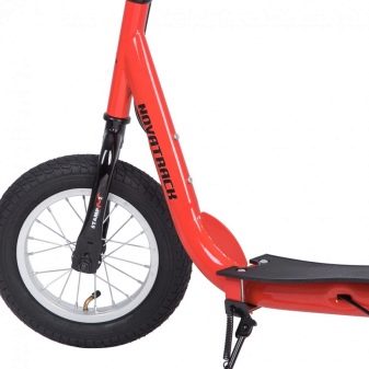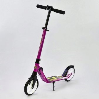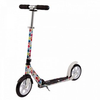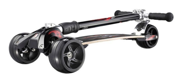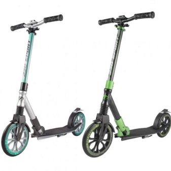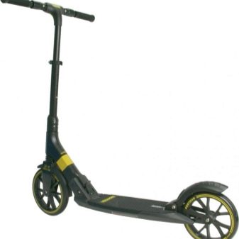 Das Modell gilt für SUVs, überwindet Bodenoberflächen gut. Sie können aus sieben Farboptionen wählen. Das Modell hat einen massiven Stahlrahmen und große aufblasbare Gummiräder. Belastungen bis 75 kg standhalten. Die Länge des Scooters beträgt 112 cm, die Plattformen 30 cm. Das Lenkrad ist im Bereich von 71 bis 77 cm einstellbar. Das Produkt wiegt 6,5 kg, hat eine Handbremse und kann eine vertikale Position einnehmen.