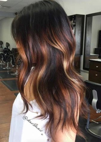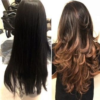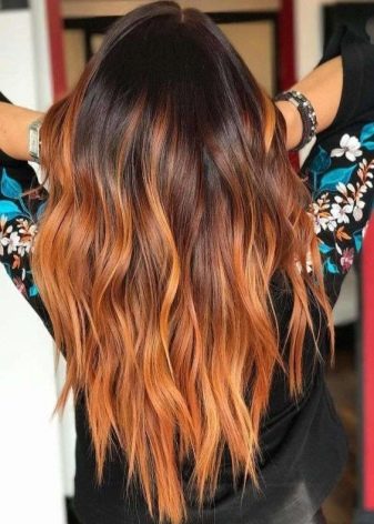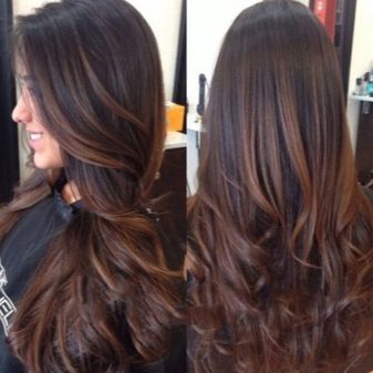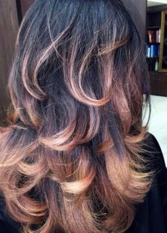 Eine ideale Leinwand für einen erstaunlichen natürlichen Effekt sind lange Haare. Mehrstufige Haarschnitte sehen besonders gut aus. Bei Vorhandensein eines Knalls erfolgt die Färbung ab der Ebene, an der die Länge endet, da sonst keine Harmonie entsteht.