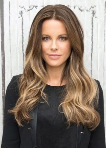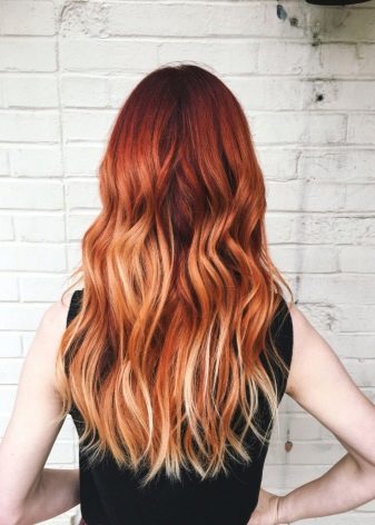 Die Maltechnik beinhaltet einen sanften Übergang von einer Farbe zur anderen, ähnlich in der Farbe. Farbunterschiede sind bis zu 3 Tönen zulässig. Eine größere Anzahl wird unnatürlich aussehen. Die Wirkung von in der Sonne ausgebrannten Locken entsteht. Diese Färbung sieht wunderschön aus: Die Frisur wird voluminöser und üppiger.