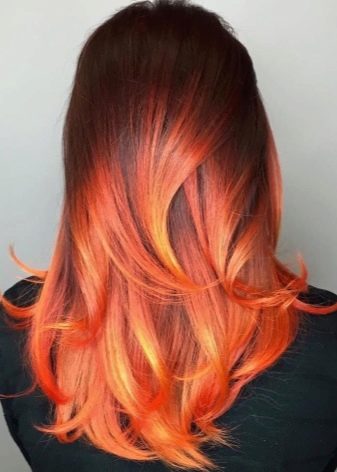 Geeignet für solche Färbungen die meisten Brünetten oder rothaarigen. Auf diesen Haaren können Sie effektiv im Shatushi-Stil färben. Hier können Sie bei der Auswahl eines Farbtons Fantasie zeigen. Bei dunkelbraunem und mittelbraunem Haar ist die Auswahl an Farbtönen viel geringer. Trotzdem erfrischt die Technik das Haar erheblich und verkürzt die Jahre seines Besitzers.