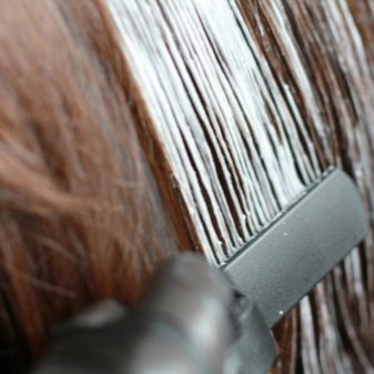 - Klemmen. Da die Farbe ungleichmäßig aufgetragen wird, müssen die Stränge mit speziellen Clips oder Haarnadeln getrennt werden.