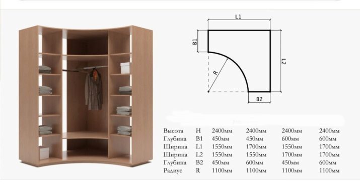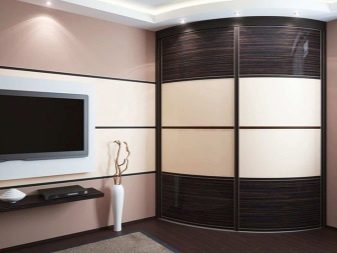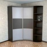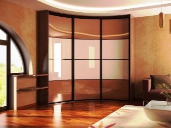 Sie sehen originell und beeindruckend aus, aber ihr interner Inhalt erfordert einen nicht standardmäßigen Ansatz. Daher sind ihre Kosten ziemlich hoch. Darüber hinaus passt ein Radiusschrank stilistisch weit von jedem Interieur entfernt. Aber seine stromlinienförmige Form sieht sehr beeindruckend und nicht sperrig aus.