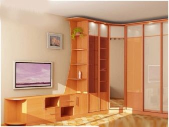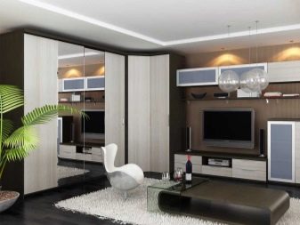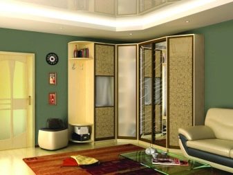 Im Wohnzimmer können Sie verschiedene Arten von Eckschränken verwenden. Die Wahl des Modells hängt in der Regel stark vom Budget, dem Geschmack der Eigentümer, den Eigenschaften des Zimmers und dem Ort ab. Der Preis besteht auch aus internen Inhalten, Funktionen. Folgende Arten von Eckschränken werden unterschieden: