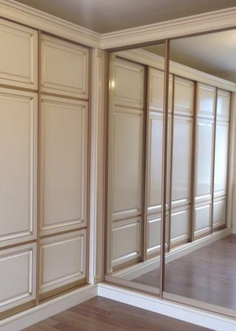 Je nach äußerem Design sind Eckschränke unterteilt in gespiegelt und ohne Spiegel.