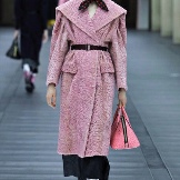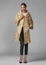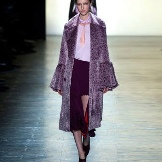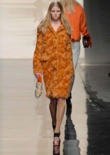 - Modellglocke - mit einem sehr ausgestellten Boden in Form einer Blume. Die Länge eines solchen Pelzmantels ist normalerweise etwas höher oder etwas unterhalb der Knie. Das Produkt hat normalerweise einen Stehkragen oder einen englischen Kragen.
