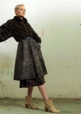 Um ein stilvolles, attraktives Bild zu kreieren, ist ein Rock oder ein Kleid mit einem romantischen Schnitt bis zur Mitte des Knies ideal für den Astrachan-Pelzmantel.