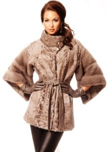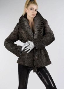 Solche Modelle sehen nicht sehr einfach aus, da sie zusätzliche Elemente haben - einen Gürtel an der Taille, einen Umlegekragen, gut sitzende Ärmel und bequeme Schultern. Kurze Karakul-Pelzmäntel eignen sich eher für Frühling und Herbst. Verkürzte Modelle sind bei Mädchen am beliebtesten. In diesem Mantel kannst du jeden Tag zur Schule gehen.