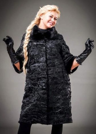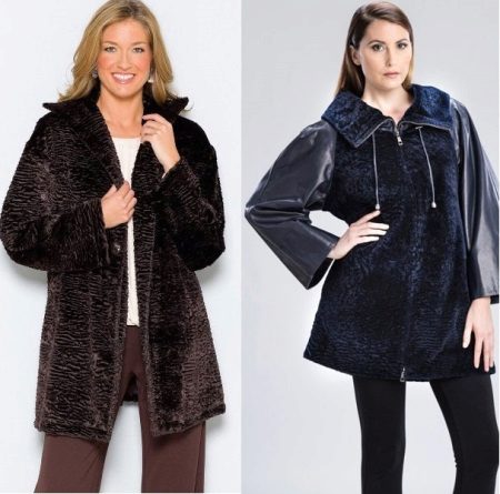 Kurvige Damen gelten als unübertroffene Fashionistas. Große Astrachan-Pelzmäntel sind bei ihnen immer beliebt. Solche Pelzmäntel passen gut auf die Figur, sehen nicht sperrig aus, fügen kein Volumen hinzu, wie flauschige Pelzmäntel.Praktische Mäntel aus großen Karakul halten mehrere Saisons und verlieren nicht ihre ursprünglichen ästhetischen Eigenschaften. Unter Berücksichtigung der Merkmale der Silhouette werden große Kleidungsstile ausgewählt. Normalerweise sind dies trapezförmige, rechteckige, gerade und leicht ausgestellte Bilder, die die Figur optisch schlank machen.