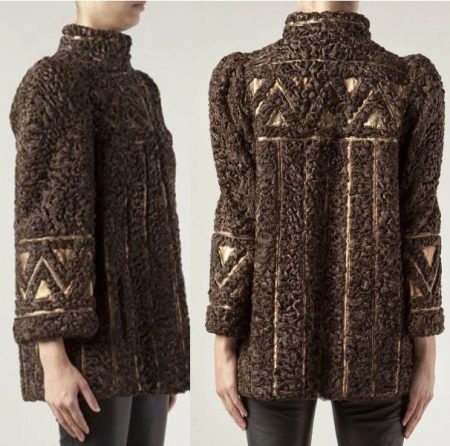 Geschnittene Modelle von Astrachan-Pelzmänteln haben ihre eigenen Eigenschaften. Das kann sein:
