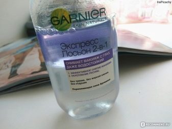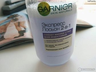 2 in 1 Garnier Express Makeup Remover gilt auch für Budgetoptionen. Es bietet eine einfache Entfernung von Kosmetika, hat ein angenehmes Aroma von Lavendel. Nach dem Auftragen dieser Flüssigkeit kann jedoch auch eine ölige Beschichtung auf den Deckeln verbleiben.