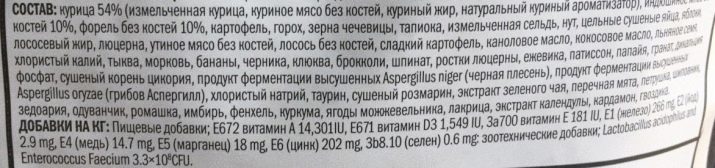 Mit einem Futtermittel der Economy-Klasse ist es unwahrscheinlich, dass die Ernährung Ihres Haustieres voll ist. Da es kein Fleisch gibt, fehlt ein Vitamin-Mineral-Komplex, die meisten tierischen Innereien anstelle von natürlichem Eiweiß.