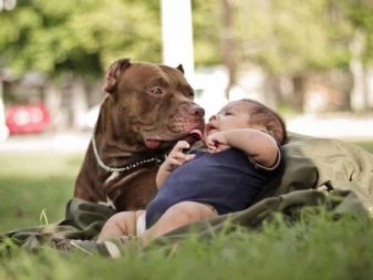 Personal und Grube sind von Natur aus friedliche Wesen, die Kinder gut behandeln. Vierbeinige Freunde haben eine außergewöhnliche Hingabe an ihren Meister und sehen ihn als ihren Kameraden und Begleiter. Sie lieben Kinder nicht nur, sondern lieben sie. Sie sind bereit, dem Baby all sein Unheil zu vergeben, sie werden einen kleinen Freund beschützen, der sogar ihr Leben riskiert.