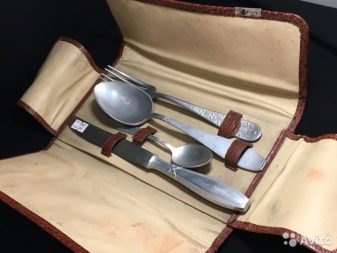 Wenn wir jedoch Geschenksets und teurere Modelle in Betracht ziehen, finden Sie in Koffern auch Marmeladenlöffel, Saucen- und Zuckerschaufeln, Messer und Gabeln mit Meeresfrüchten sowie kleine Salatgabeln.