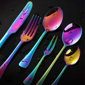 - Instrumente sollten funkeln und schimmern. Es spielt keine Rolle, welches Material für die Gabeln, Messer oder Löffel verwendet wurde. Es kann Stahl, Silber, Aluminium sein. Das Material spielt keine solche Rolle, die Hauptsache ist, dass das Set glänzt.
