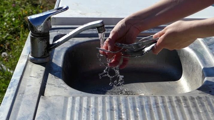 Nach dem Essen sollte das gesamte Besteck gewaschen werden. unter einem Strom von warmem Wasser, mit einem milden Reinigungsmittel für Geschirr und von Hand.
