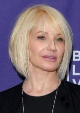 - Platz - Der vielseitigste Haarschnitt für mittellanges Haar für Frauen über 50. Eine Vielzahl von Optionen hilft Ihnen bei der Auswahl des am besten geeigneten. Ein klassisches Quadrat mit glatten geometrischen Linien verschleiert einen unvollkommenen Hals perfekt und betont die Ausdruckskraft der Augen. Das Vorhandensein und die Form der Pony hängen von der Form des Gesichts ab, mit deren Hilfe die Unvollkommenheiten der Haut, Falten verschwinden, die Form der Nase angepasst und die Ohren versteckt werden. Auf dem Quadrat sehen komplexe Färbeoptionen wie Färbung, Ombre, hellere oder farbige Strähnen im Gesicht großartig aus. Der zweifelsfreie Vorteil eines Quadrats an den Schultern ist Natürlichkeit und einfache Pflege.