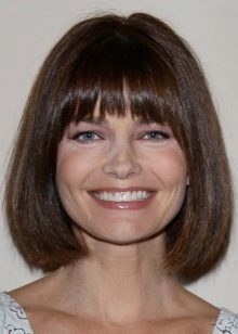 - Rechteckige Form in seinen Merkmalen ist es fast quadratisch, hat aber eine länglichere Form, die durch Asymmetrie, schräge Locken und Gesichtsrahmen etwas weicher und kürzer gemacht werden sollte. Sieht toll aus, Bob direkt unter dem Kinn mit einer leichten Teilung.