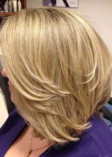 - Geschichtet. Die Schichtung auf mittlerem Haar sieht raffiniert und schön aus.