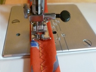 Bevor Sie das Werkstück zu einem Ring verbinden, müssen Sie die Ziellinien verlegen. Zusätzlich zur dekorativen Funktion verleihen sie der Tasche Zuverlässigkeit. Schirmtextilien bröckeln nicht, so dass die Kante auf dem Overlock nicht bearbeitet werden kann.